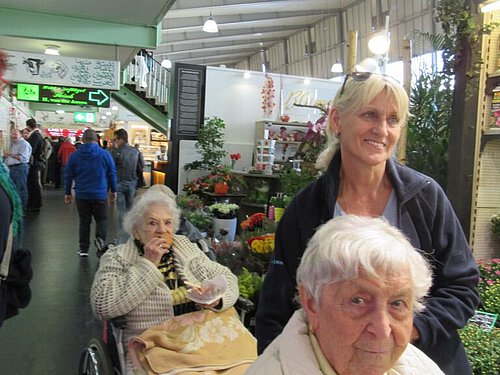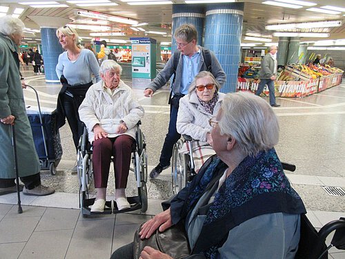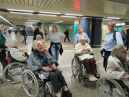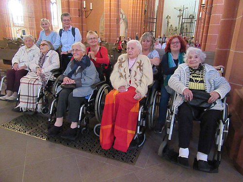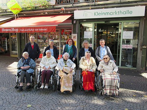Am 27.09.2018 haben unsere Bewohner einen Ausflug nach Frankfurt zur Besichtigung der neuen Altstadt gemacht. Wie praktisch, dass das Haus Emmaus so verkehrsgünstig liegt und alle ohne großen Umweg in die U-Bahn steigen konnten. Bereits auf der Hinfahrt wurde die vielen Neubauten entlang der Bahnstrecke bewundert. Wie viel sich doch in den letzten Jahren verändert hat. Angekommen in Frankfurt waren Zwischenstopps auf dem Römerberg, in der Kleinmarkthalle und im Dom ein Muss. Die leckere Fleischwurst in der Kleinmarkthalle, die die Standbesitzer für unsere Bewohner extra mundgerecht drapiert hatten, ließen sich alle schmecken. Beim Gang durch die Altstadt staunten alle über das, was in den letzten Jahren hergerichtet wurde. Die Bewohner erzählten so manche Anekdote aus den früheren Zeiten. Im Dom haben alle gemeinsam Kerzen angezündet im Gedenken an Ihre Lieben. Im Anschluss haben die Bewohner und Begleitpersonen in einem netten Frankfurter Café den Tag Revue passieren lassen.