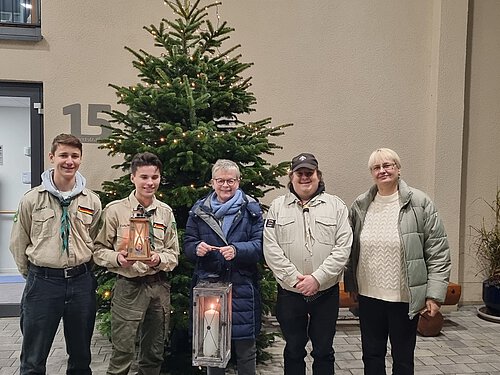 Am Abend des 3. Advent erreichte das Friedenslicht 2023 das Haus Emmaus. Das Friedenslicht mit dem diesjährigem Motto "Auf der Suche nach Frieden" wurde von den Taunus-Pfadfindern aus Bad Homburg überreicht, eine Tradition die seit Jahren besteht.